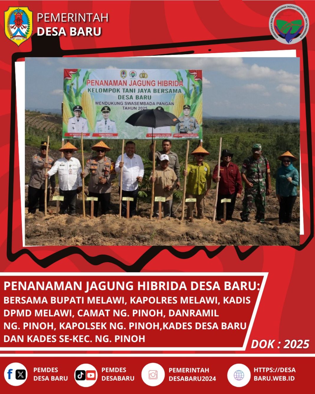 Dalam sambutannya Bupati Melawi H. Dadi Sunarya Usfa Yursa menyampaikan apresiasi kepada Pemerintah Desa Baru yang telah mendukung Program Ketahanan Pangan Nasional dengan menanam jagung hibrida. Bupati berharap Desa yang ada di Kabupaten Melawi segera melaksanakan penanaman jagung guna mendukung Program Nasional Presiden RI Prabowo Subianto.